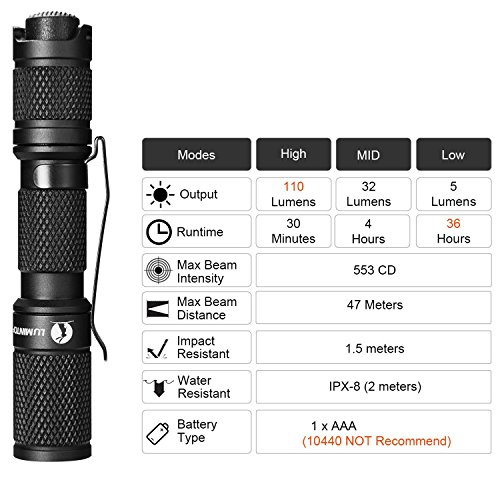 LUMINTOP® 2x Tool AAA 110 Lumen Keychain EDC LED Mini Flashlight with Cree XP-G2,AAA Battery,Reversible Clip