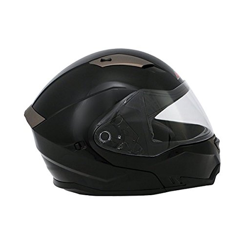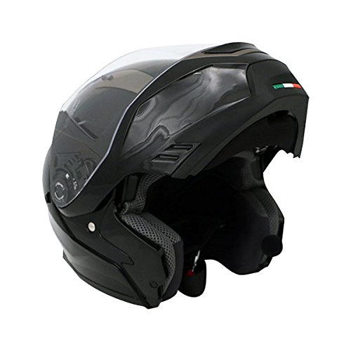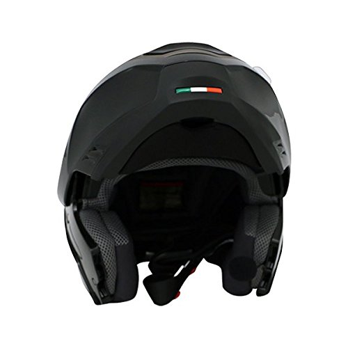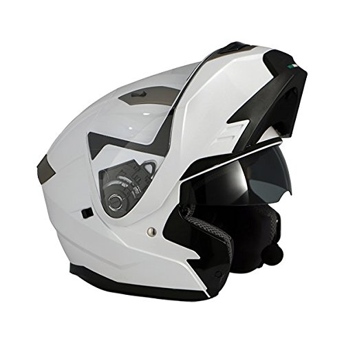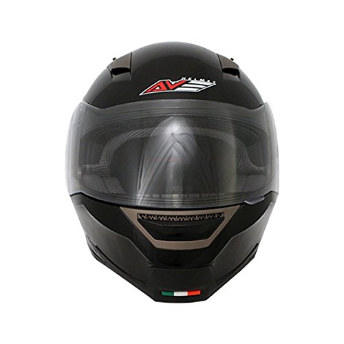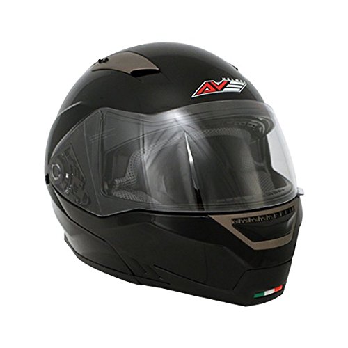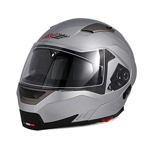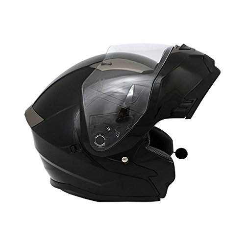 The Adventure Flip Up Modular motorcycle helmet is a thermoplastic high impact resistant helmet. AVE developed a unique Over Head Air Flow System that allows fresh air to flow through the interior of the helmet. 100 percent UV protection, anti-scratch, anti-fog, and anti-glare Retractable Sun-Visor changes position with the easy slide switch mechanism. High impact clear External Visor with anti-scratch, anti-fog and anti-glare technology. Optional smoke, dark, and mirror Visor also available. Fully Washable and Removable inner liner, 3M anti-bacterial/hypo-allergenic treatment material molds softly to the form of your head. With just the release of a button the helmet transforms from a full-face helmet to an open-face helmet and is able to stay locked in position for a more secure ride and protection. Top-quality Bluetooth System allows the rider to Stay Communicated with other riders using Bluetooth technology, and switch to different options which include: FM Radio, Intercom, and Phone Pairing for Outgoing Calls, Incoming Calls, GPS voice system, and music. Supports 200 meters max range rider-to-rider intercom. Lithium-polymer battery with a charger. Modular helmet that complies with FMVSS218 (DOT) and ECER 22-17.Weight 3.64 Pounds. Medium (57-58), Large (59-60), X-Large (61-62), XX-Large (63-64).Feature