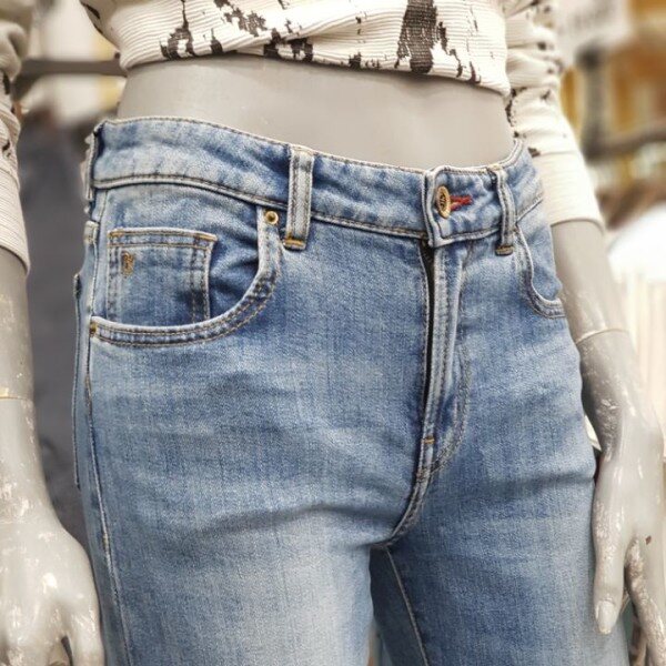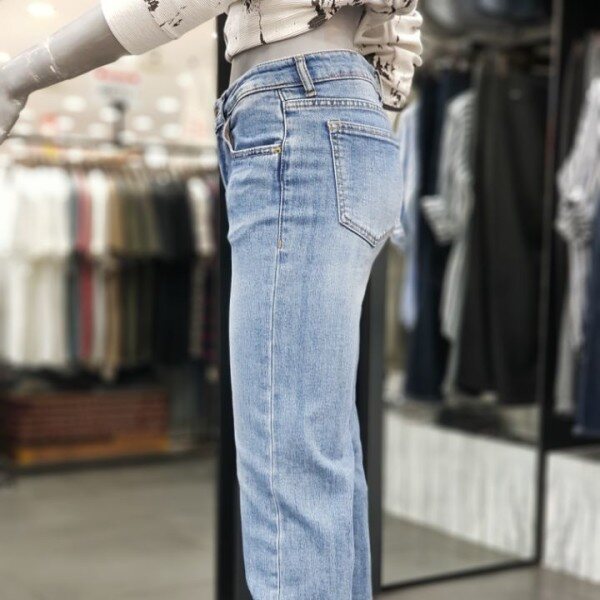 라이트한 워싱감이 돋보이며, 발목 부분이 퍼지는 핏이여성스러움을 한껏 표현할수 있는 제품입니다.