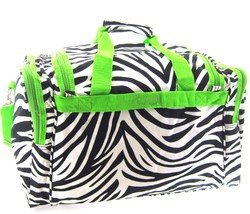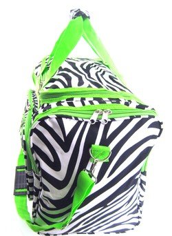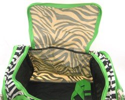 -. Brand : World Traveler -. ClothingSize : 19-inch -. Color : Zebra - Green -. Department : womens -. EAN : 0763598168841 -. Feature : Adjustable, detachable non-slip padded shoulder strap / U-top opening provides easy access to roomy zipper secured main compartment / Metal feet allows stabiity to bag when setting down and provides bag floor not to touch floor directly to get dirty / Front exterior zip pocket with two exterior end zip pockets / Silver pewter hardware -. MPN : T19-163-G -. NumberOfItems : 1 -. PackageQuantity : 1 -. PartNumber : T19-163-G -. ProductGroup : Apparel -. ProductTypeName : LAGE -. Size : 19-inch -. Title : World Traveler Green Zebra Duffle Bag 19-inch -. UPC : 763598168841