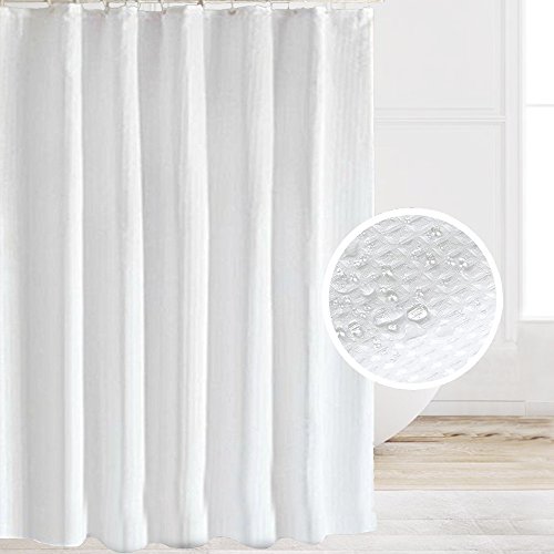 Eforcurtain Large Size 72 by 86 Inches Thicken Fabric Bath Curtain with Rust Proof Metal Grommets, Chic Solid White Waffle Woven Shower Curtain Water Repellent and Mildew Free
