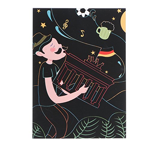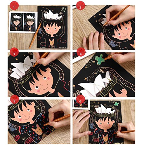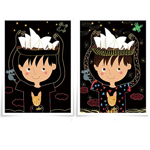 Features: 100% brand new and high quality. Easy arts and crafts project for children in the classroom, afterschool care, daycare, camps, recreation programs, or at home. Kids can create colorful art by scratching off the black coating to reveal multi-colors. Scratch boards are non-toxic, safe for kids, and trusted by teachers. You never know what color it will show when you scrape the surface with the scratch pen. Scrape it and see what beautiful color under the black coating, it will give you surprise. The book size is around 21.5*22.7cm, including total 5 sheets. Specifications: Item Name: Scraping Painting Book Material: Paper Color: shown as pictures Size: 21.5×22.7cm/8.46×8.94in (Approx.) Number of pages: 5 sheets Theme: Travel Country Series Type: #1: Britain, Japan, U.S.A, Thailand, France / #2: Australia, China, Russia, Germany, Italy (Optional) Gender: Unisex Age Range: > 3 years old Quantity: 1 Set (other accessories demo in the picture is not included) Note: 1.Transition: 1cm=10mm=0.39inch 2.Please allow 0-1cm error due to manual measurement. pls make sure you do not mind before you bid. 3.Due to the difference between different monitors, the picture may not reflect the actual color of the item. Thank you! Package includes: 5 X Scratch Painting Paper (No retail package) 1 X Scratch Stick 0