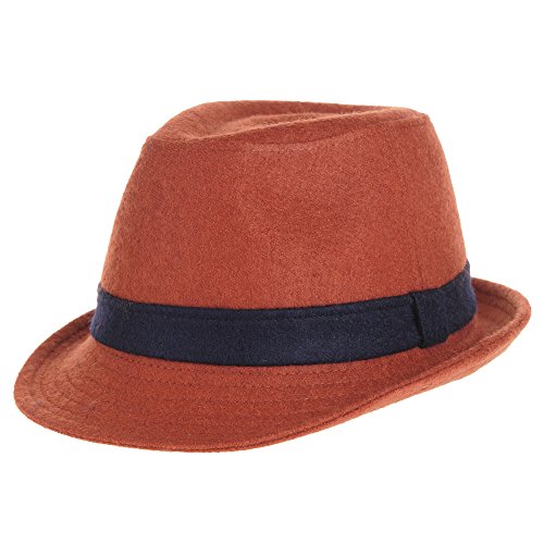 WITHMOONS Wool Felt Fedora Hat Trilby wtih Contrast Band LD6445 (Red)