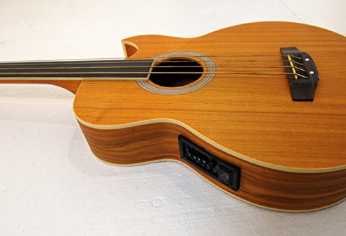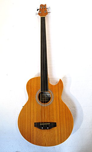 Studio : Jisheng Publisher : Jisheng Product Description This fretless 4 string electric acoustic cutaway bass guitar is designed and made in China by a professional instruments manufacturer, it has satin light brown finish,willow-wood body, with rosewood fingerboard, nut bridge saddle, chrome hardware,diecast machine tuners, it comes with a truss rod , it has nice looking PVC butter-cream color binding it comes with 4 band EQ, a 9V battery required; the bass also comes with a free 10mm padded black gig bag the overall length is 47", the scale length is 34", and the nut width is 2", fingerboard overall length is 25", the overall length of the body : 19 1/2", the thick of the body: 3 5/8", the largest width of the upper bout : 11 1/2", the largest width of the lower bout: 15 15/16", and the width of the waist: 10" 0