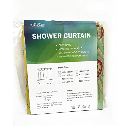 Uphome 72 X 72 Inch Bright India Tropical Shower Curtain with Paisley Patterns-Bright Red and Yellow Heavy-duty Cute Fabric Shower Curtain for Women