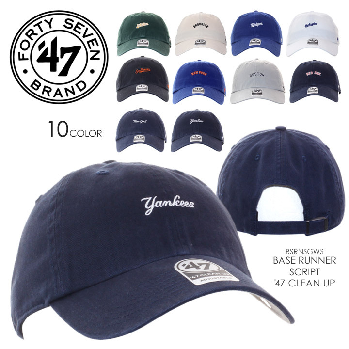 '47 BRAND定番モデル"CLEAN UP"のボディーを使用したMLBコットンキャップ。洗いざらした味のあるコットンの風合いに芯なしの若干浅めの クラシックスタイルで、主張しすぎない控えめなスクリプトロゴがアクセントになった幅広いコーディネートに取り入れやすいアイテム。 気軽に丸洗いができ、洗うごとに頭の形に馴染むなど色落ちも含めて経年変化も楽しめます。