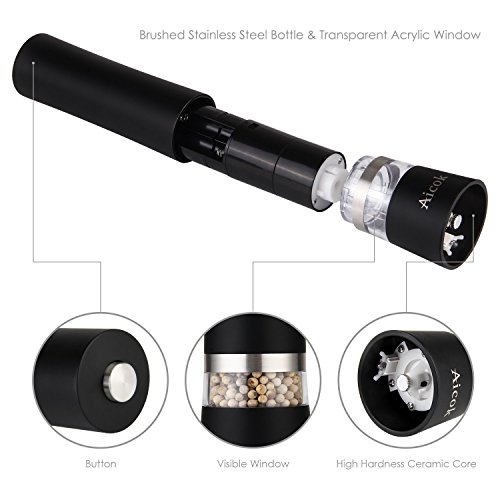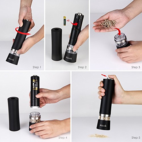 - Elegant Pepper Grinder - Aicok salt and pepper grinder set features an adjustable grinder, can finely crush, mill and grind your spices to perfection Note: Salt and pepper are not included. top quality,