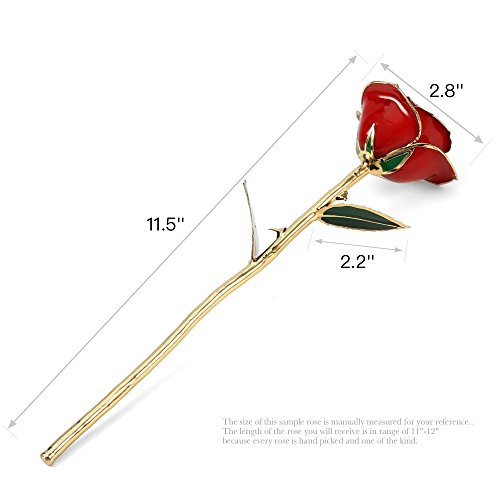 Red Rose - The traditional symbol for love and romance, and a special way to say "I love you." It also symbolizes beauty and perfection. Respect, admiration, and devotion are often associated with a red rose. She (or he) will love the unique gift of an everlasting 24k gold rose for an anniversary, birthday, Christmas, Valentine's Day, Mother's Day or for any other occasion.