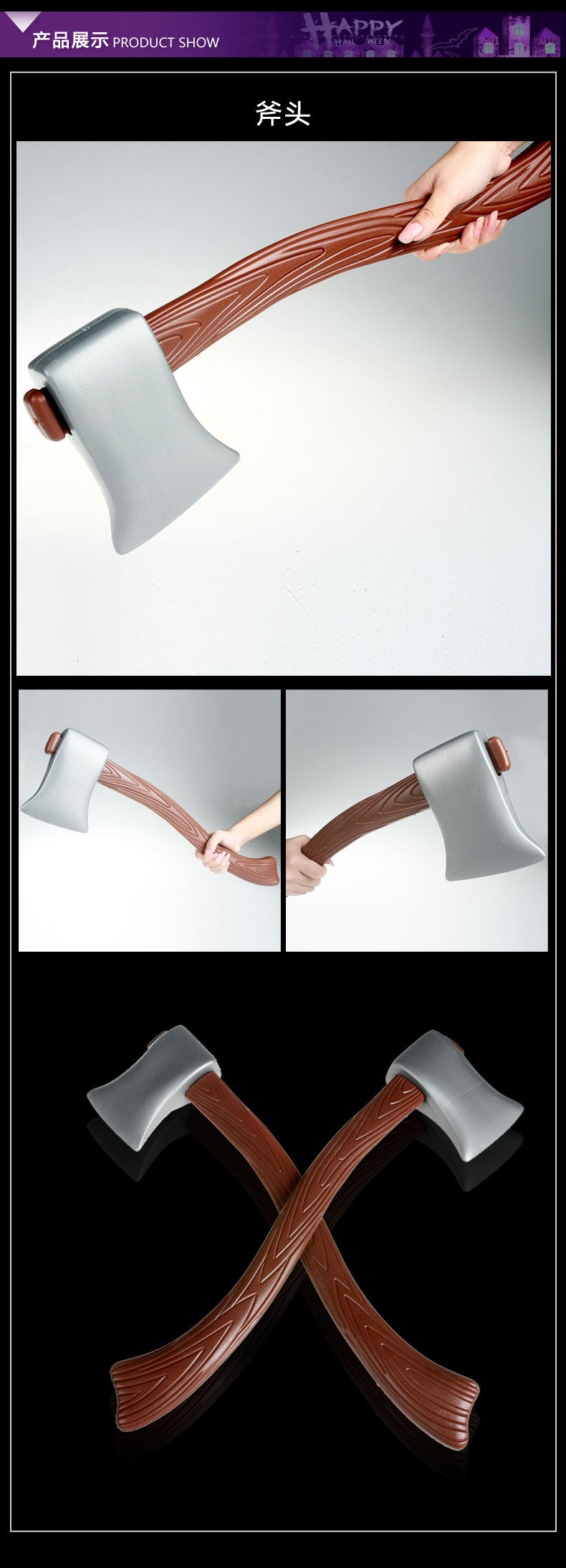 万圣节海盗COS道具斧头表演道具斧头玩具斧子单面长斧头假斧头