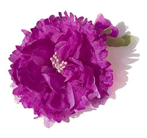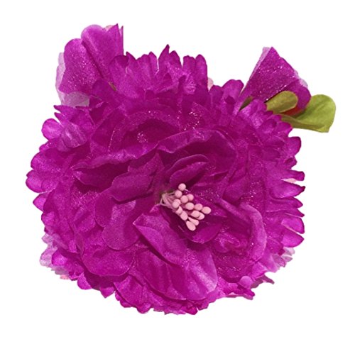 Cuteque International Organza and Silk Peony with 2 Rosebuds Attached (Pack of 3), 4", Fuchsia