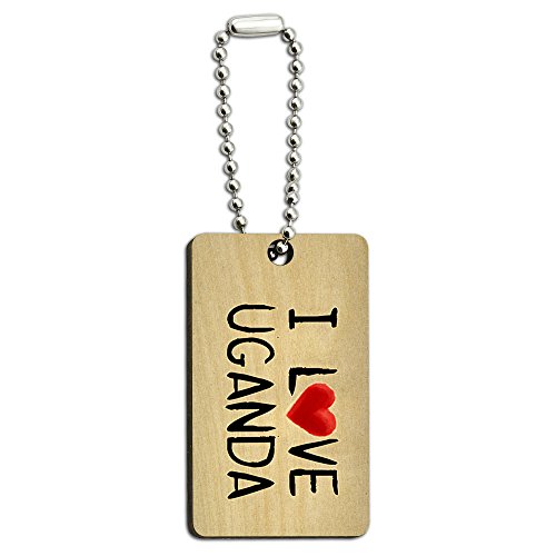 (Graphics and More)/Accessories/Wallets, Money Key Organizers/DIRECT FROM USA/I Love Uganda Written on Paper Wood Wooden Rectangle Key Chain