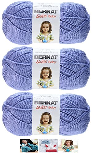 3 Skeins of Bernat Softee Baby Yarn, in Mauve. Three patterns included are Car Seat Blanket, Knit Hat with Ears and Crochet Lapel Jacket.
