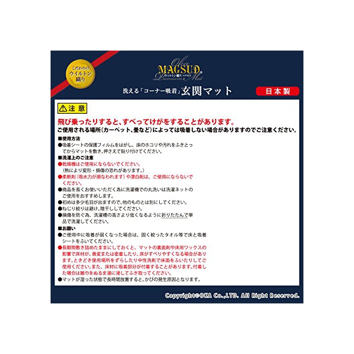 원본상품명: オカ 洗えるコ?ナ?吸着 ミルカ 45×75cm