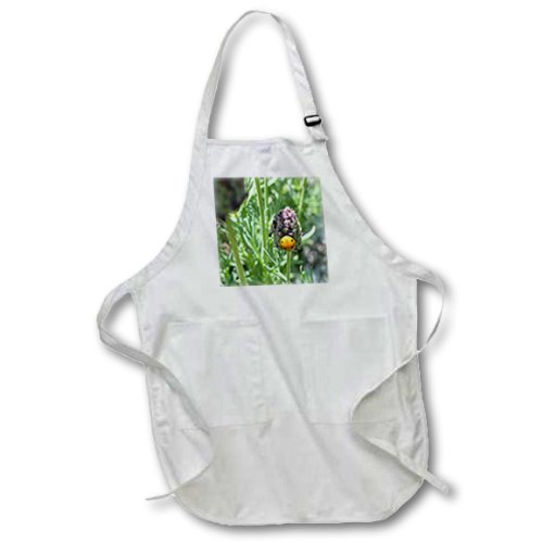 3dRose apr_22930_1 Ladybug on Lavender Flower Full Length Apron with Pockets, 22 by 30-Inch, White