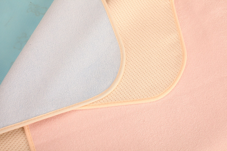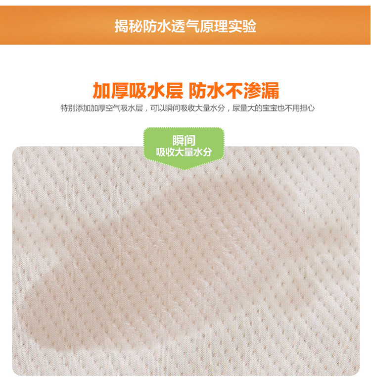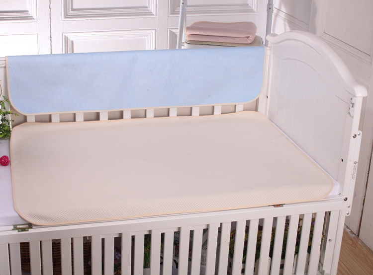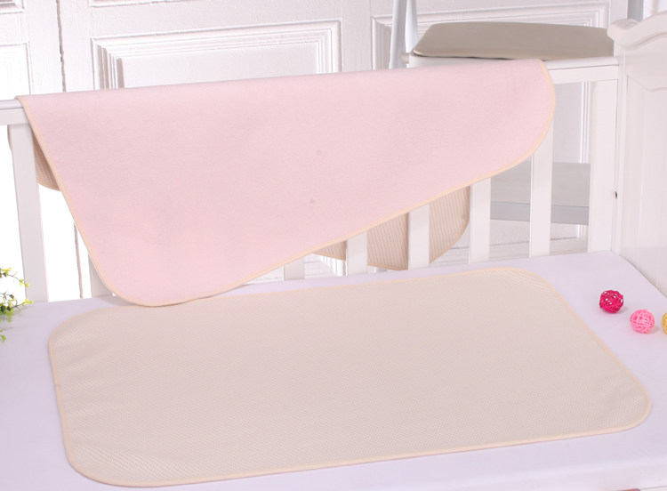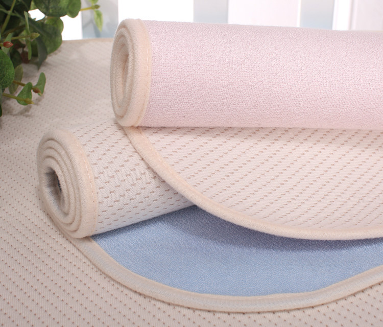 Organic cotton changing mat, natural color, no formaldehyde, zero printing, non-fluorescent agent, four-layer structure, two-sided usable, one side is organic cotton air layer, one side is bamboo fiber material, the intermediate layer is waterproof, can machine washing, drying.