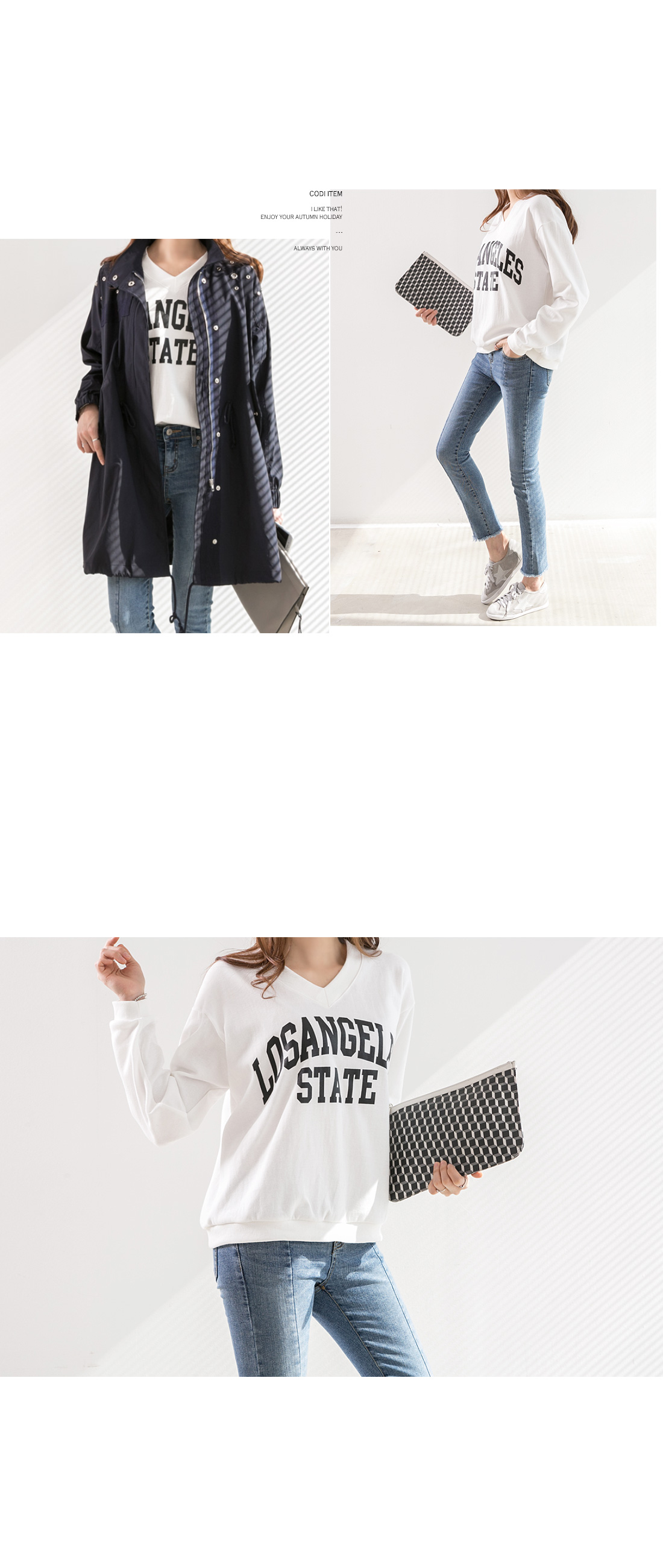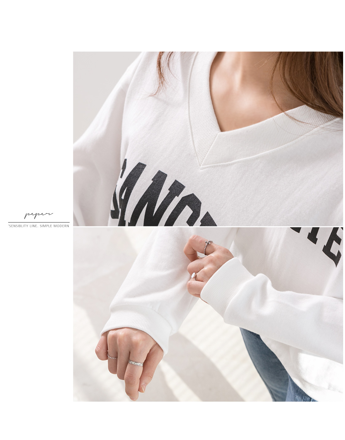 베이직한 디자인에 레터링 프린팅이 돋보이는 아이에요.