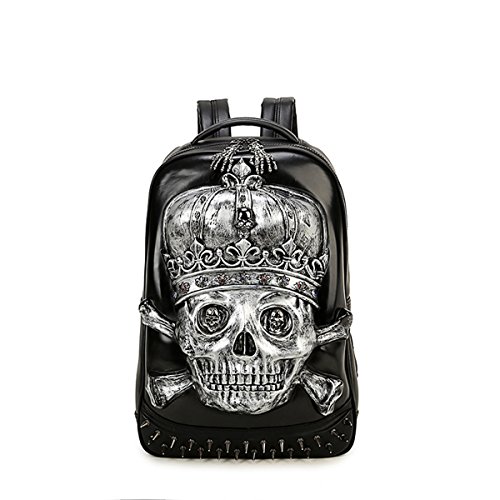 -. Title : JJJJHUA Unique Design Cool 3D Skulls Head Premium PU Leather Backpack Laptop Shoulder Bag