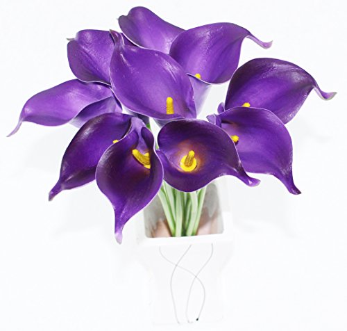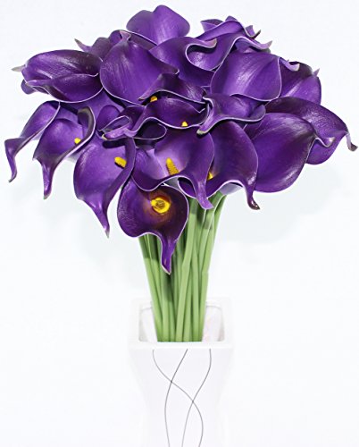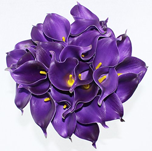 Simpleyourstyle Calla Lily Artificial Flower 20pcs No Vase Bridal Wedding Bouquet 20 Head Latex Real Touch Flower Bouquets (Purple)