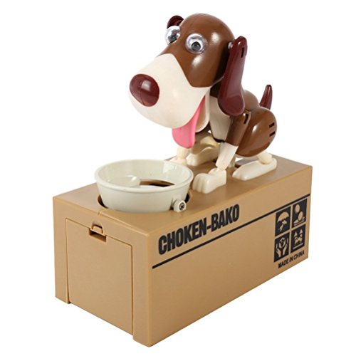 Finders Save Saving Money Box Robotic Puppy Hungry Eating Dog Coin Bank (BROWN WHITE)