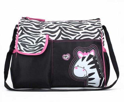 Trendy Boutique Black & White Zebra Striped Pink Zebra Diaper Bag
