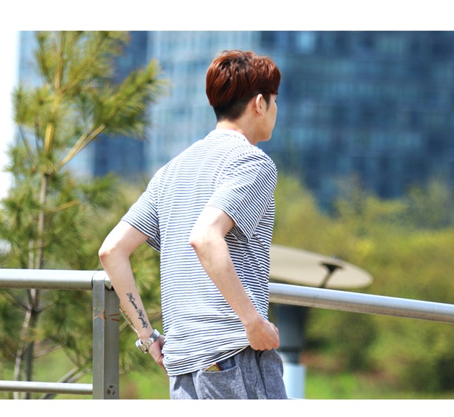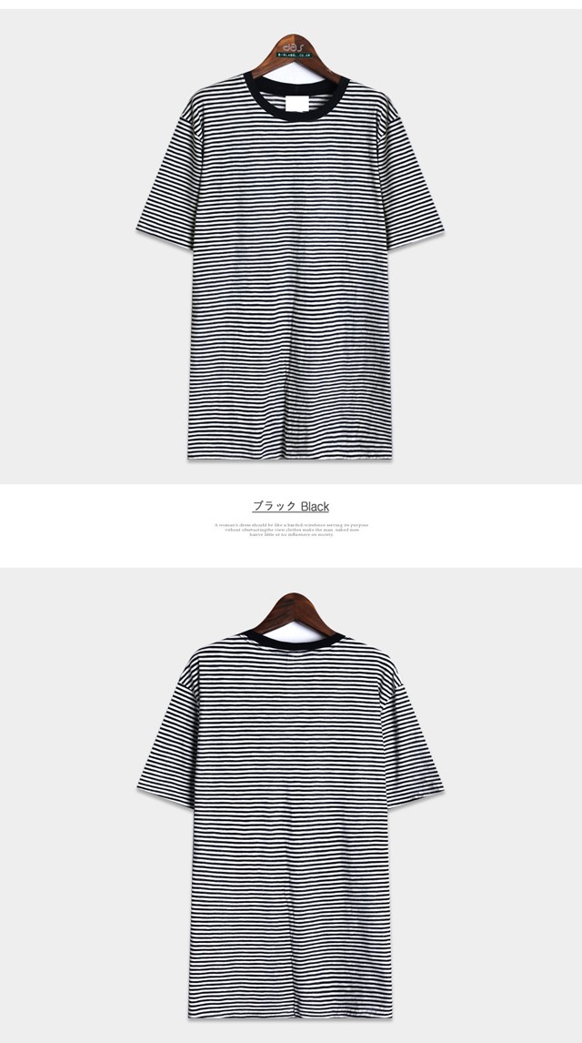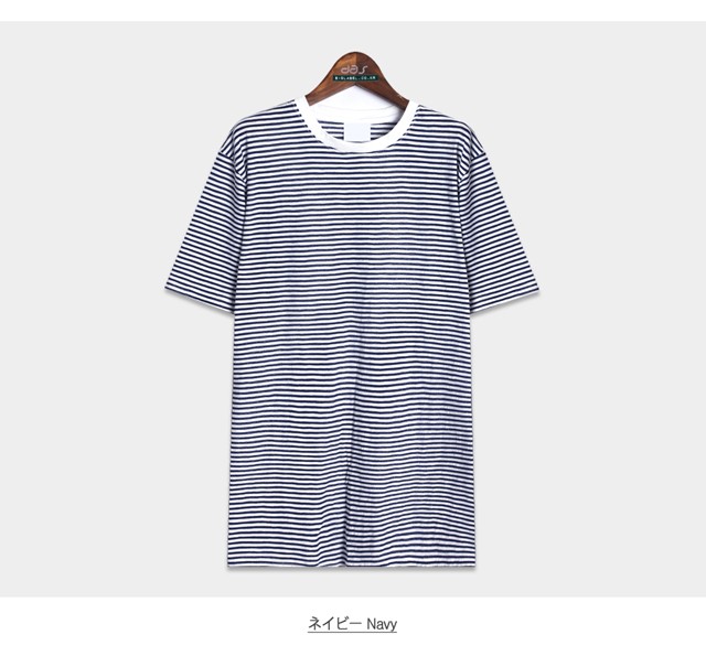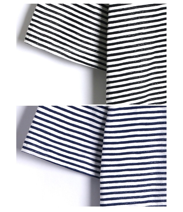 高級な生地とシンプルなデザインの半袖です。さっぱりしたストライプのデザインにベーシックなクールネック、気軽に着用できる夏必須アイテム!