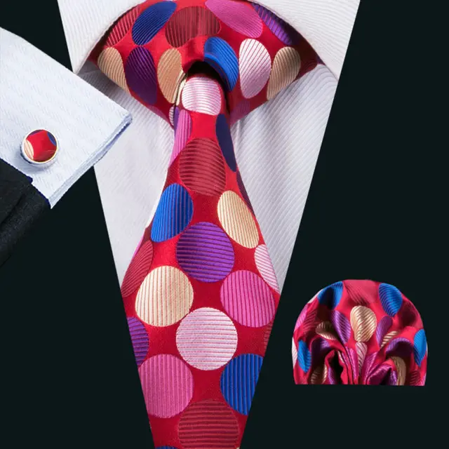 | [해외]LS-1532 배리. 좋아서 클래식 남성 넥타이 100% 실크 레드 폴카 도트 넥타이 손수건 커프스 세트 남성 웨딩 파티 비즈니스 |