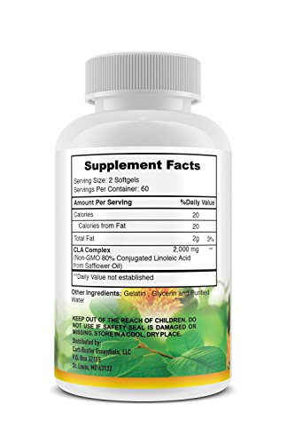 Studio : CB Essentials LLC Publisher : CB Essentials LLC Binding : Health and Beauty Product Description Clinical research has shown that 4000mg per day (2000 mg. twice per day) of high quality Conjugated Linoleic Acid is proven to be the optimum daily dosage maximizing desired fat burning and weight loss results, when used in conjunction with a healthy diet and exercise program. *These statements have not been evaluated by the Food and Drug Administration. This product is not intended to diagnose, treat, cure or prevent any disease. 0