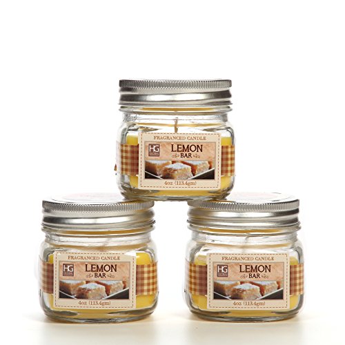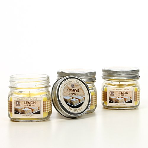 Hosley, Set of 3, Lemon Bar Scented Mason Jar Candles 4oz Each. Ideal GIFT for Party Favor, Weddings, Spa, Reiki, Meditation, Bathroom Settings. O9