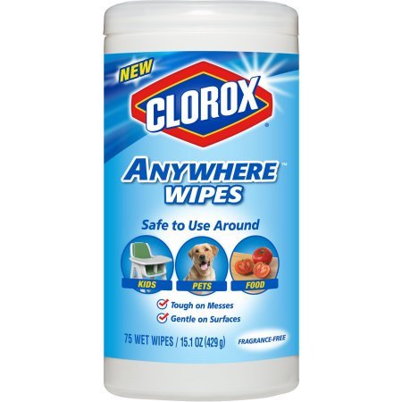 -. Title : Clorox Anywhere Wet Wipes, Kid, Pet, Food Safe, Bleach-Free and Fragrance-Free, 75 Sheets 15.1 oz