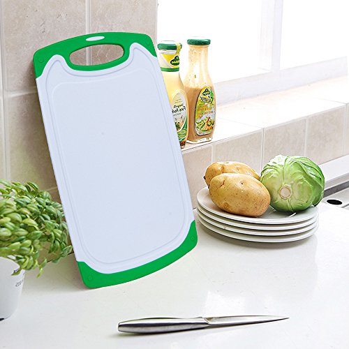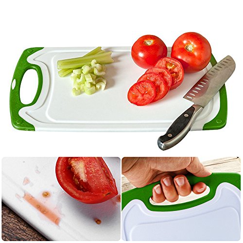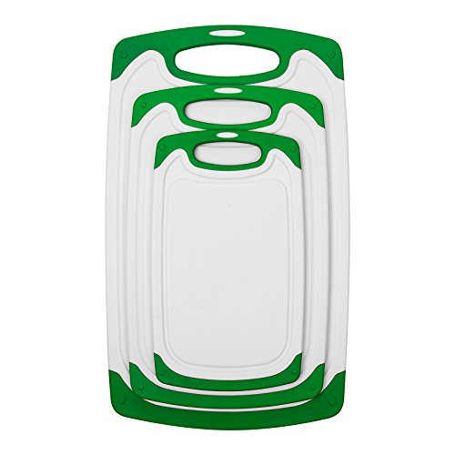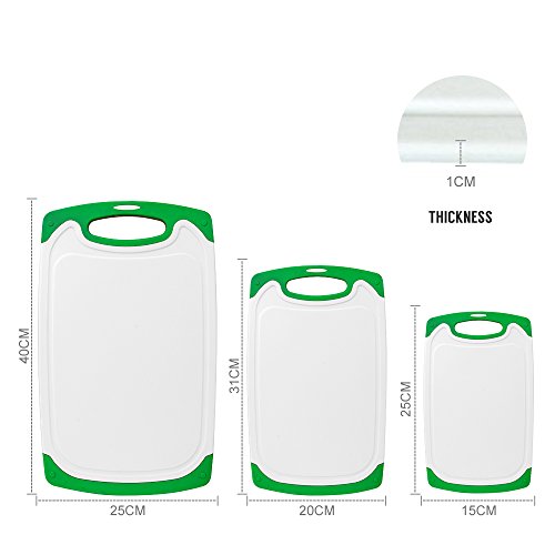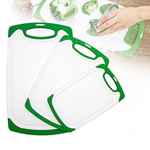 Henweit Plastic Cutting Board Set 3 Pieces with Handle Non-slip Chopping Boards Rectangular Chop 3 Different Sizes Great for Meat, Fish, Vegetables, Fruit Bread & Cheese kitchen(Green)