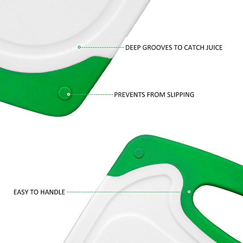 - Useful Handle and Juice Groove---This cutting board with handles is easy to leave it on you counter-top or hanging on the wall.And the juice groove where the liquids from chopped up fruits and veggies can collect