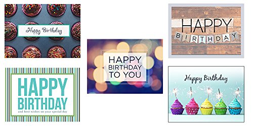 Birthday Greeting Card Assortment - VP1603. Business Greeting Cards Featuring Five Different Birthday Cards. Box Set Has 25 Greeting Cards and 26 Bright White Envelopes.