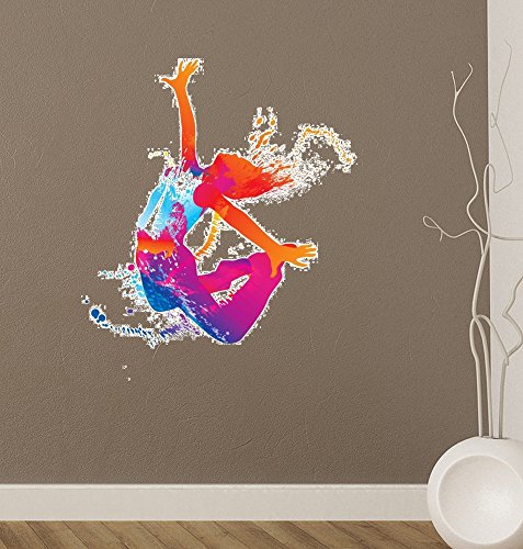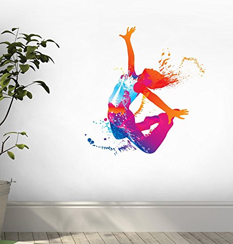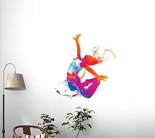 Wallmonkeys The Dancing Girl with Colorful Spots and Splashes on White Peel and Stick Wall Decals WM26186 (30 in H x 26 in W)
