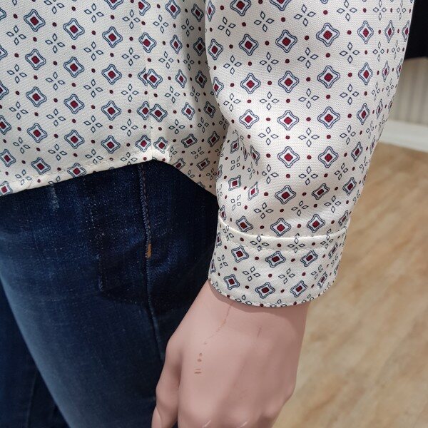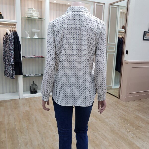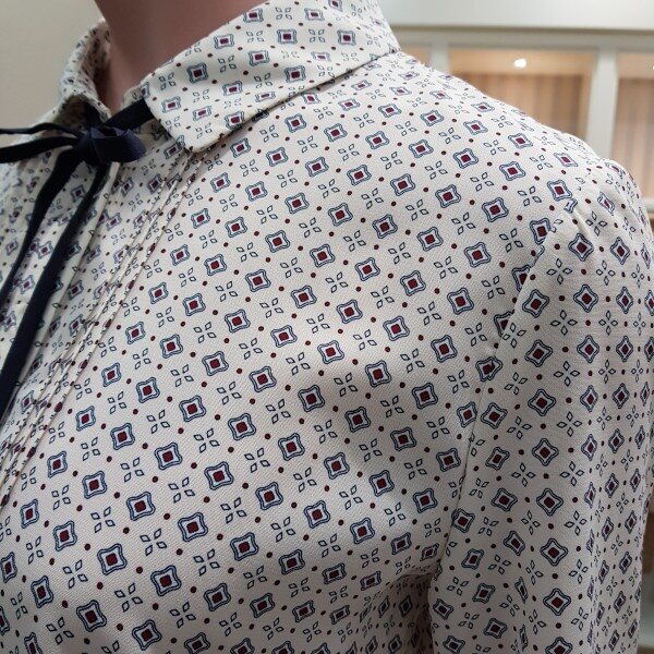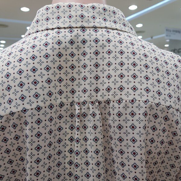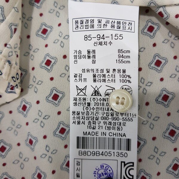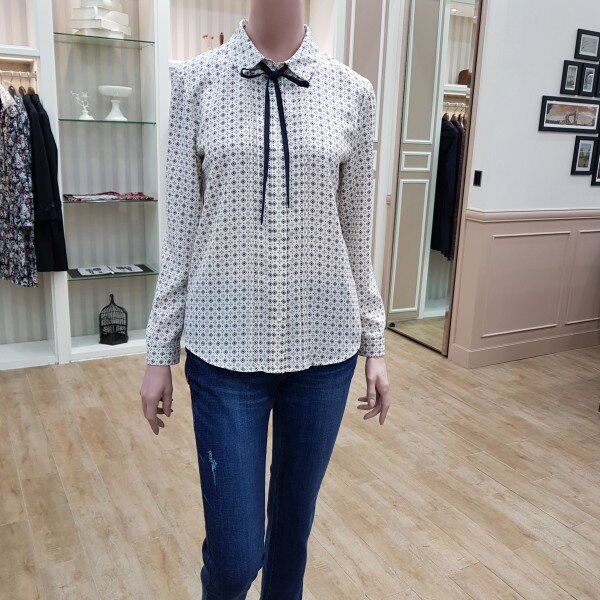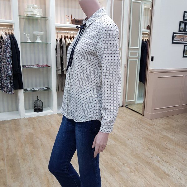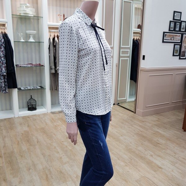 리본끈 탈부착 프린트블라우스55기준 총장64cm