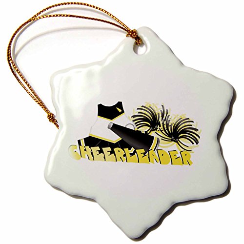 3dRose orn_26012_1 Black and Gold Cheerleader Porcelain Snowflake Ornament, 3-Inch