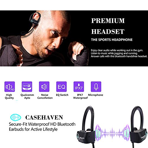 -. Title : Bluetooth Headphones, Wireless Sports Earphones Headset W/Mic IPX7 Waterproof HD Stereo Sweatproof Earbuds for Gym Running Workout Noise Cancelling Headsets With SIRI For iPhone & Android