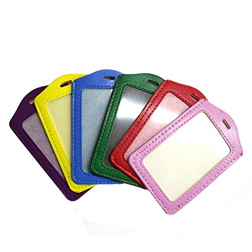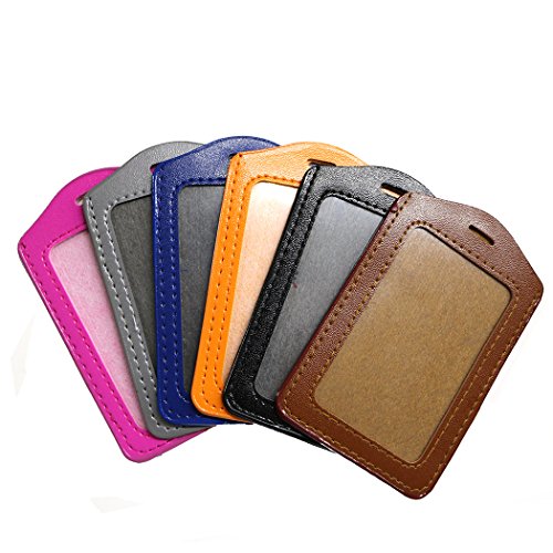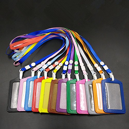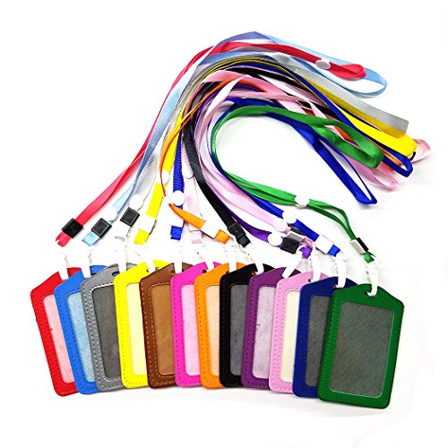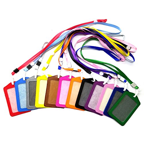 Aoyoho 12Pcs PU Leather ID Badge Holder with Polyester Detachable Neck Lanyard