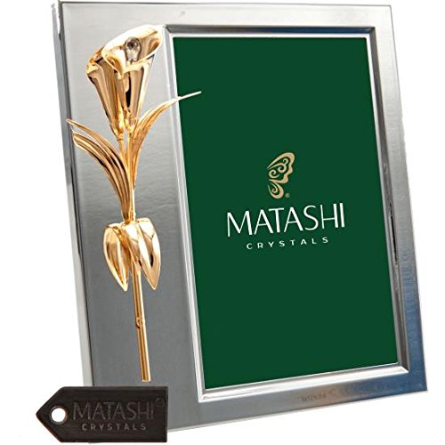 Feature : EYE-CATCHING DESIGN: A regal Calla Lily is mounted on a Tarnish Resistant Silver Frame above the photo of your choice. Crafted with quality materials like 24K Gold and precision cut Matashi® crystals. / DIMENSIONS: 6 x 6.5 x 0.75 in. (Weight 1.15 pounds) Fits Picture size: 4 x 6 in. The size ensures it is perfect for any location, from an office to a bedroom! Keep a memento of your loved one on your desk at work or at home. / ELEGANT PACKAGING: Comes secured in a velvet pouch within a luxury gift ready box. Write a personal message on the provided gift card and be assured of your product authenticity with the included official Matashi® individually serialized warranty card. / GIFT READY: The perfect gift for any occasion. Give as a gift on Mother's day, Christmas, Valentine's day, as a Housewarming present or in any other situation you wish to show someone you love how much he or she means to you. / SATISFACTION GUARANTEED: All Matashi® products are covered by a 100% Money-Back satisfaction guarantee and craftsmanship is guaranteed under a 2 year limited warranty.