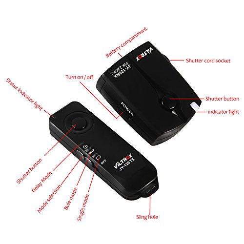 -. Feature : ワイヤレスカメラのシャッターをトリガー 。    送信機の動作周波数:2.4MHz。 / 100メートルの作動距離。省エネ設計、長い労働時間 / シングルショット、タイムラプス撮影やバルブ機能付きワイヤレスシャッターリモコン。 / 異なるブランドの異なるカメラモデルを制御するために、次のようにシャッターケーブルの異なるタイプに切り替えることができます。 / パッケージ内容:トランスミッター×1 レシーバ×1 ケーブル×1
