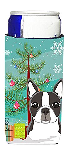 Caroline's Treasures Christmas Tree and Boston Terrier Michelob Ultra Koozies for Slim Cans, Multicolor