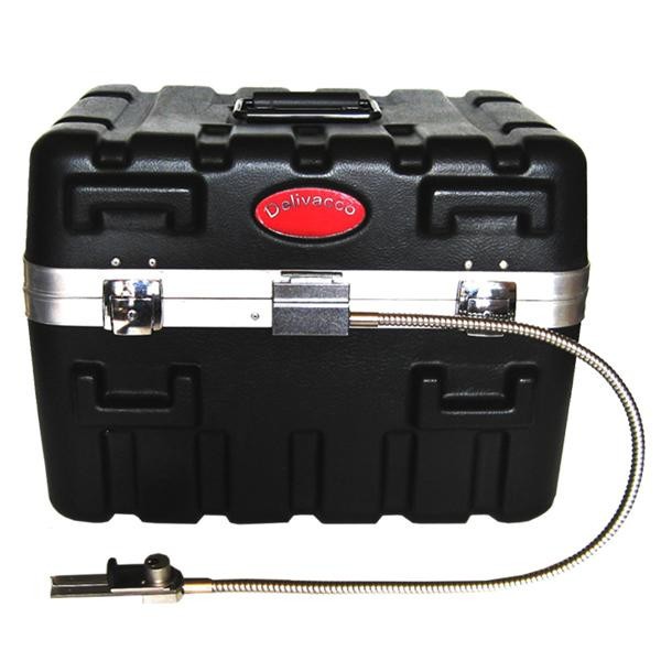 必要な時にだけ玄関に設置できるポータブル宅配ボックスです。SKD社製のABS樹脂キャリングケースと繋止錠を組み合わせた「A・X-II」は、音楽機材等の精密機器を運搬するために開発された軽さと丈夫さを併せ持ったボックスです。家から出られない時や、留守中でも宅配物の受け取り・発送ができます。 |