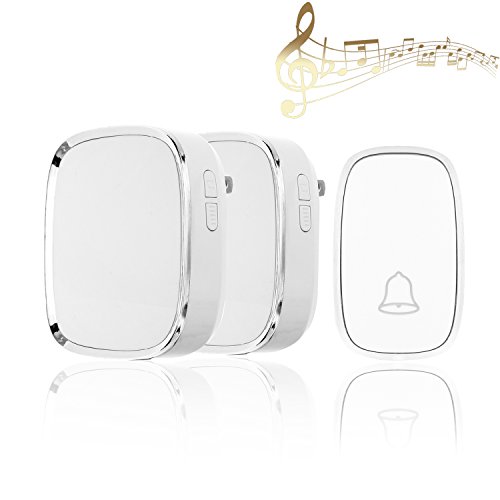 Reserwa Wireless Doorbell Waterproof Doorbell 36 Chimes 4 Level Volume LED Indicator Portable Door Bell 1000ft Operating Range with 1 Push Button Transmitter and 2 Plug-In Receivers (White)