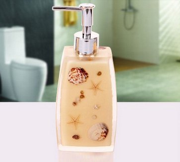 Fun Plastic Soap Pump Dispenser - Starfishes and Seashells in Cream
