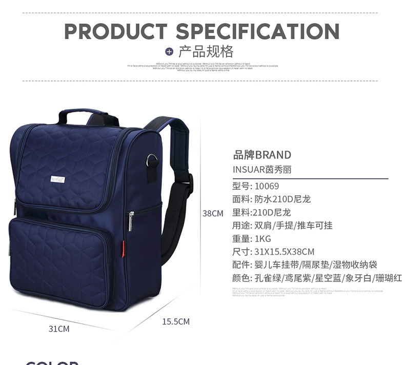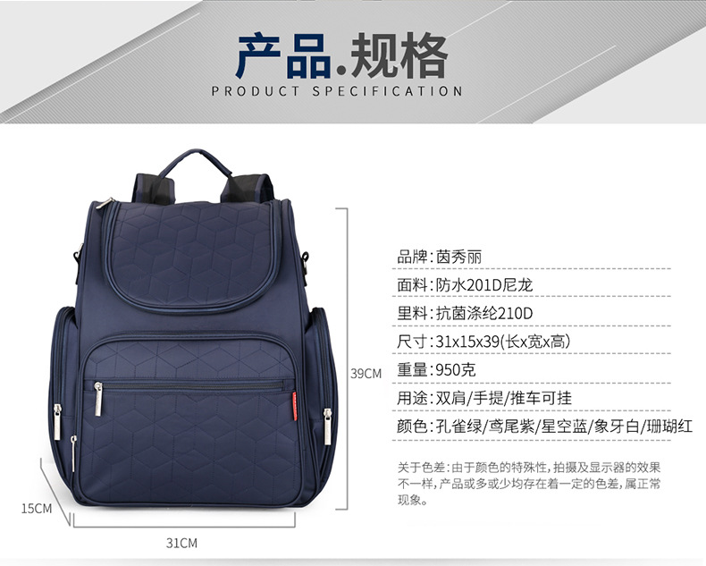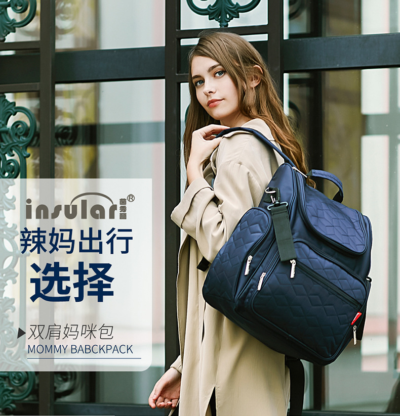 茵秀丽时尚双肩多功能大容量妈咪包母婴外出背包妈妈包孕妇包
