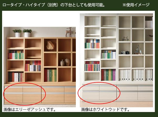 ご家庭用としてはもちろん、ショップやオフィスなど多用途に使えるシンプルなデザインです。ローチェストとしての単独使用だけでなく、別売りのロータイプ・ハイタイプの棚の下台としての使用も可能です。幅木用カットにより壁にピッタリくっつけて設置する事ができます。 |