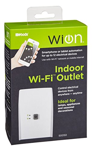 Control and monitor your lights and appliances with your smartphone from anywhere with the Woods WiOn indoor outlet! Program your living room lamp to turn on at sunset, make sure your coffee pot is off, turn the radio on for your pet while you're away, schedule the fan to be on so you come home to a cool house, or set lights to randomly go on and off for an occupied appearance while you're on vacation. Simple control, all at your fingertips. With WiOn smart switches, wirelessly connect all of your favorite devices using our simple, feature-filled products. No knowledge of electrical wiring needed! No need to buy special electronics--the WiOn indoor Wi-Fi outlet retrofits your existing electrical devices to completely modernize your home, at affordable prices. Download this user-friendly app, connect your device to your smartphone using your existing Wi-Fi network and begin controlling your device from anywhere - at home or on the go using Wi-Fi network or mobile internet (3G/4G/LTE). There are no set-up fees, no hub required and no monthly charges. You can even expand your system to include multiple indoor and outdoor smart switches, which do anything from lighting the front porch to turning on and off outdoor holiday decorations automatically. With WiOn, wirelessly updating your home is as easy as 1-2-3.Feature