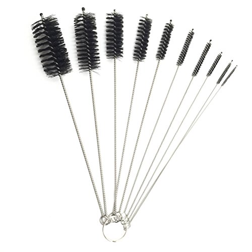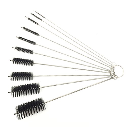 Mmei Bottle & Tube Brush Cleaning Brushes Nylon Tube Brushes stainless steel handle for Drinking Straws Glasses Keyboards Jewelry Cleaning(Set of 10 )