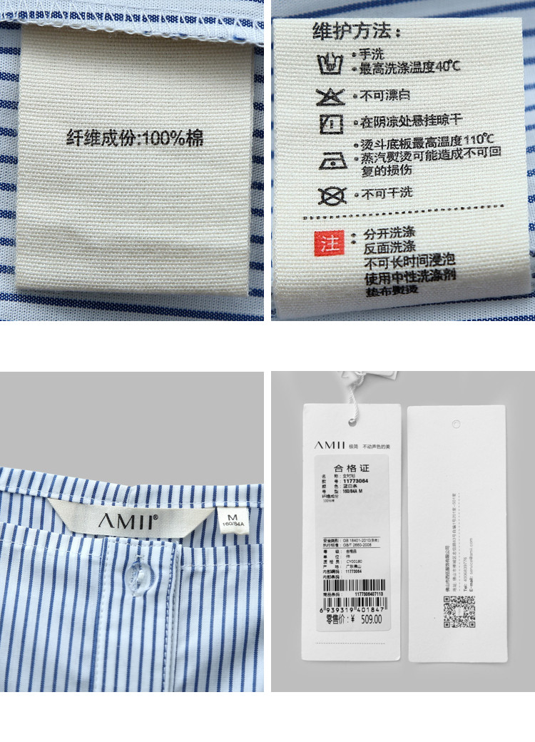 | 洗涤标准: | 不可浸泡悬挂晾干不可干洗40℃以下手洗110℃以下垫布熨烫不可漂白 |