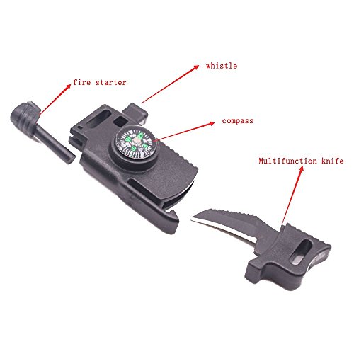 COMPASS | WHISTLE | KNIFE | FIRE STONE | FIRE STICKS - Those are the Most Important Part's for Outdoor Survival Camping.We Strongly Focus on Those Area.Most of the Bracelet Uses Cheap Compass,But We Used the Best