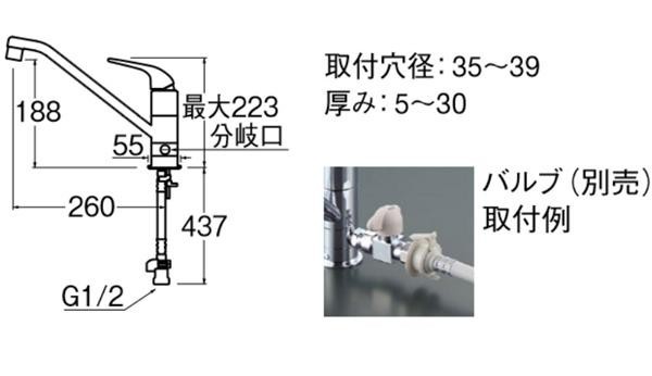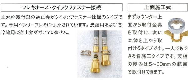 | 仕様 | JISマーク付 節湯B 節水水栓 上面施工 フレキ 節水泡沫吐水 吐水口:120度回転 |